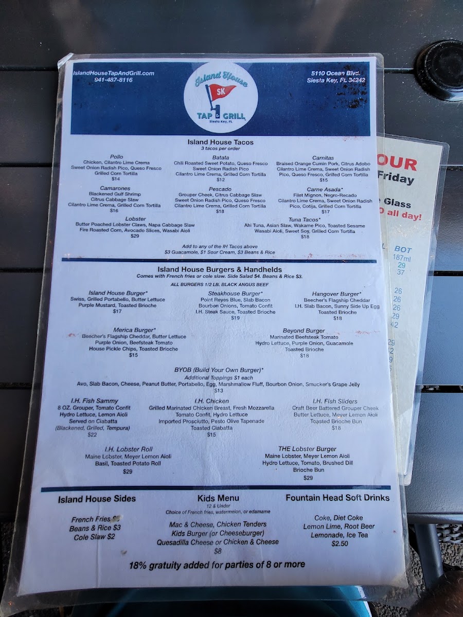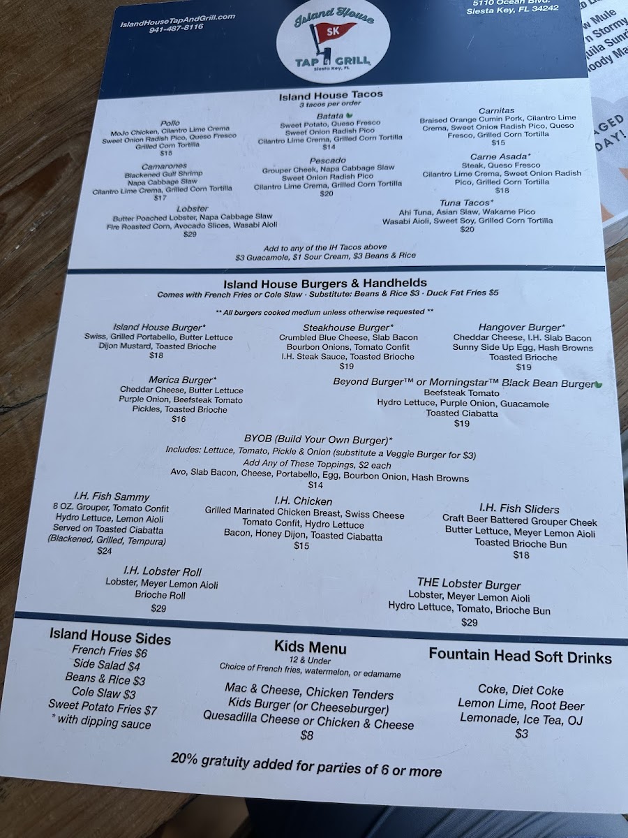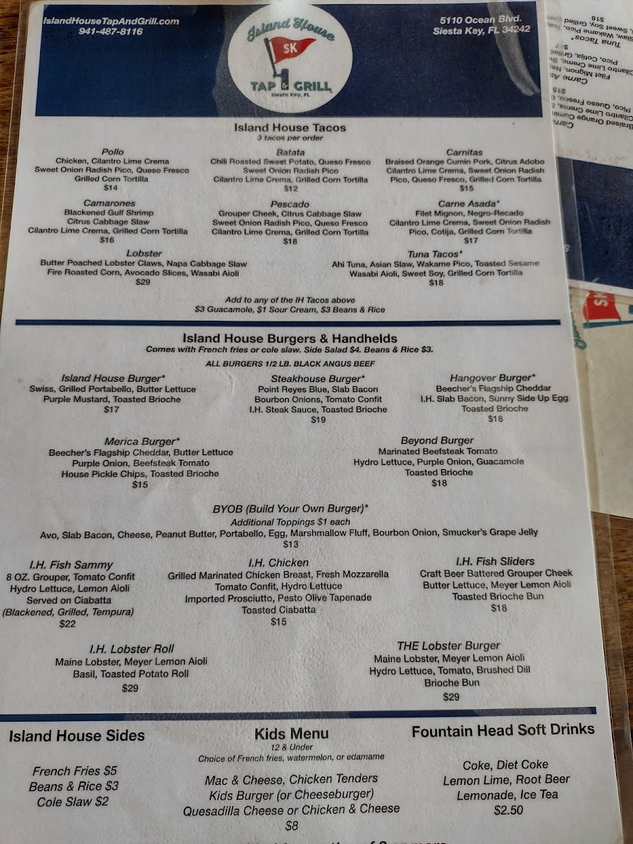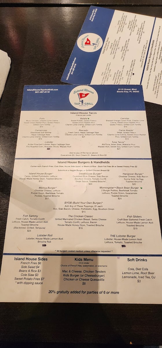 Welcome to Island House Tap and Grill, a hidden gem nestled in the heart of Siesta Key, Florida. Located at 5110 Ocean Blvd, this cozy establishment offers a vibrant island-themed atmosphere that perfectly complements its mouthwatering menu. Guests rave about the Batata tacos and the Buddha bowl, showcasing a delightful array for both vegetarian and seafood lovers.